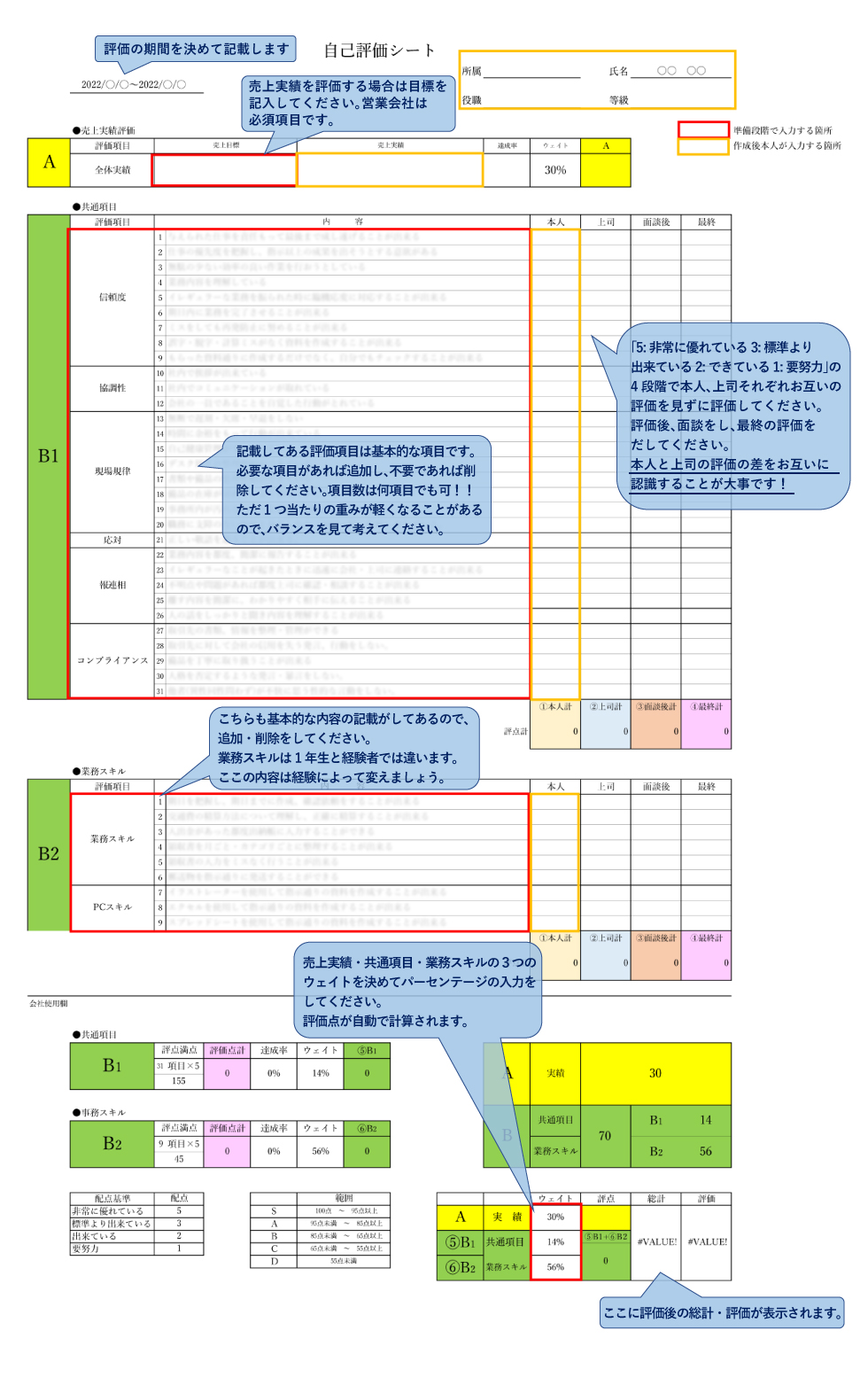 当該商品(仕事の教科書〜評価表〜)はその作成の過程で、上記の諸問題を解決する具体的対策を見出す事が可能です。具体的対策が把握できれば、社内の問題解決は進み始めます。100点の物が完成せずとも、問題解決に向かい始動させるスイッチであり、地図となります。